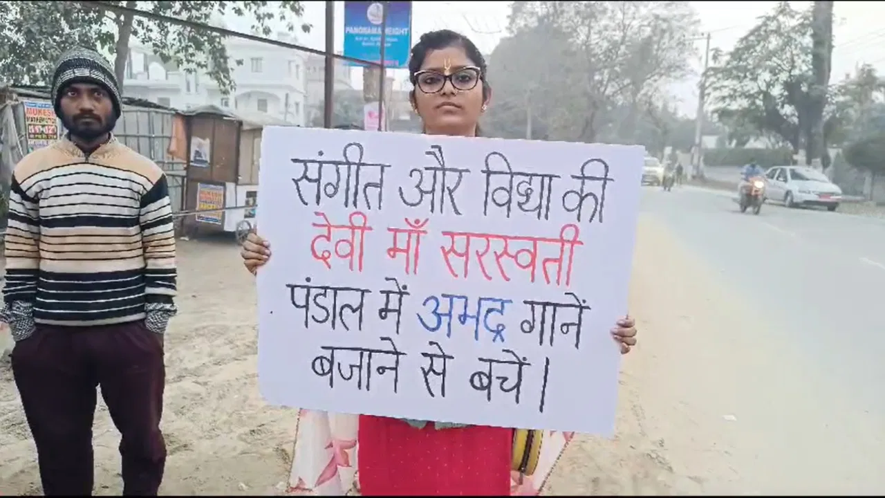 पूर्णिया: सरस्वती पंडाल में अश्लील गाने बजाने के खिलाफ बेटी ने चलाई मुहिम, लोगों को ऐसे कर रही जागरूक
