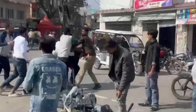 गाड़ी से ठोकर लगने के बाद शख्स गिर पड़ा लोग उसे बचाने आए लेकिन वाहन चालक उसे उल्टा खरी-खोटी सुनाने लगा. बस फिर क्या था जो शख्स गिरा था उसने भी आपा खो दिया और दोनों के बीच जमकर मारपीट शुरू हो गई. इस मारपीट में दोनों पक्षों की ओर से और भी लोग शामिल हो गए. इसके बाद देखते ही देखते बवाल बढ़ता गया. इस दौरान पुलिस की भूमिका पर भी सवाल उठाए जा रहे हैं क्योंकि उस जगह सिर्फ एक जवान दोनों पक्षों पर काबू करता हुआ दिखाई दिया.पुलिस ने इस मामले में कहा है कि साहबगंज में शिव-हनुमान मंदिर का निर्माण किया गया है. रीडगंज चौराहे पर साहबगंज शिव-हनुमान मंदिर के अध्यक्ष राकेश वैद्य के भतीजे को विशेष समुदाय के तीन युवकों ने मिलकर पीट दिया. इस मामले में पुलिस ने कार्रवाई करते हुए तीन आरोपियों को गिरफ्तार किया है.