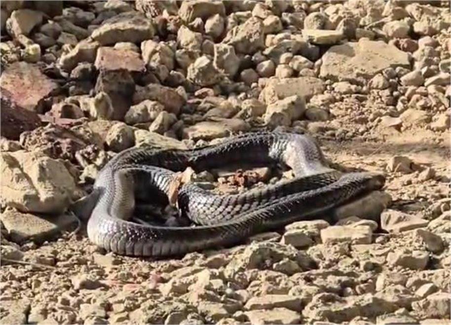 इंदौर।मध्य प्रदेश के इंदौर जिले में सोमवार सुबह तुलसी नगर इलाके में कोबरा के मिलने के बाद इलाके में सनसनी फैल गई। लेकिन कोबरा बुरी तरह से घायल था। रहवासियों के मुताबिक कोबरा गाड़ी के पहिए के नीचे आने के कारण कोबरा घायल हो गया था। वहीं जानकारी के बाद सांप रेस्क्यू करने वाले सोनू को तुरंत कॉल किया गया और ब्लैक कोबरा का रेस्क्यू किया गया। सोनू ने बताया की कई घंटों तक वो गाड़ी के पहिए के नीचे दबा हुआ था इस कारण वह कोई हरकत नहीं कर पाया। कई घंटे तक वह गाड़ी के पहिए के नीचे ही दबा रहा गनीमत यह रही की कोबरा ने गाड़ी चालक पर किसी तरह का हमला नहीं किया नहीं तो कोई दूसरी घटना हो सकती थी।