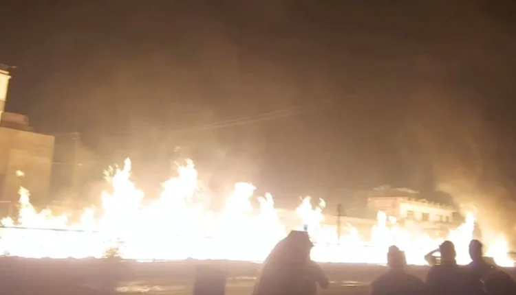 टैंकर और ट्रेलर की टक्कर के बाद लगी आग