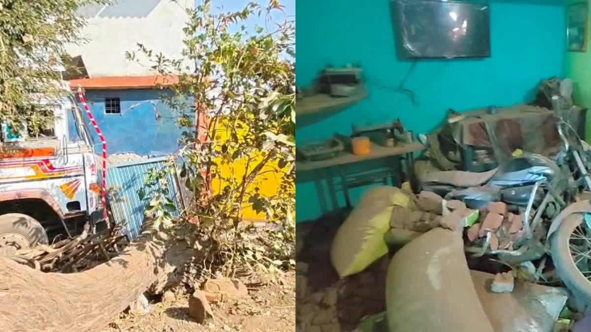 छिंदवाड़ा: रात में करीब 11 बजे घर के सामने एक एक्सीडेंट हुआ तो घर के बच्चे और पूरा परिवार देखने के लिए घर के बाहर निकल पड़ा. उसके तुरंत बाद ही फर्राटे से आता हुआ एक ट्रक सीधे उनके घर में जा गुस्सा हो और घर सहित पूरे सामान को तहस-नहस कर दिया. गनीमत रही कि पूरा परिवार घर के बाहर था वरना बड़ा हादसा हो सकता था.