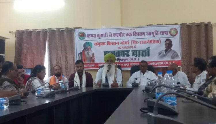 नर्मदापुरम: संयुक्त किसान मोर्चा (गैर राजनैतिक) के तत्वाधान में 7 फरवरी से निकाली जा रही कन्या कुमारी से कश्मीर तक किसान जागृत यात्रा नर्मदापुरम पहुंची. यात्रा में राष्ट्रीय किसान नेता सरदार जगजीत सिंह डल्लेवाल भी पहुंचे. इस दौरान ईटीवी भारत ने उनसे किसानों के विभिन्न मुद्दों को लेकर चर्चा की. उन्होंने बताया कि, ”यात्रा 20 मार्च को दिल्ली में समाप्त होगी और देश के लाखों किसान रामलीला मैदान में प्रधानमंत्री के खिलाफ आवाज उठाते नजर आएंगे.”