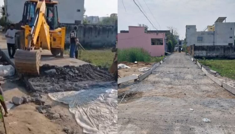 PWD मंत्री के इलाके में बड़ा एक्शन: गुणवत्ता में लापरवाही पर 2 दिन पुरानी सड़क पर अधिकारियों ने चलवाया बुलडोजर