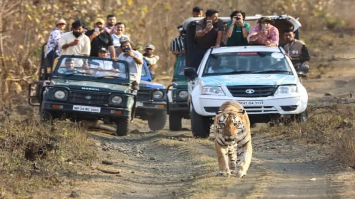 MP Wildlife News: खिवनी में बाघिन ‘मीरा’ और शावकों का दिखा अद्भुत नजारा, पर्यटकों के सामने आया ‘युवराज’