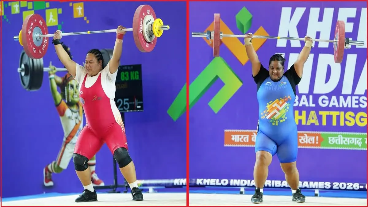 रायपुर. छत्तीसगढ़ की राजधानी रायपुर में आयोजित खेलो इंडिया ट्राइबल गेम्स 2026 में पुरुषों के साथ महिला वेटलिफ्टर भी दम दिखा रही हैं. महिला 86+ किलोग्राम वेटलिफ्टिंग प्रतियोगिता में खिलाड़ियों ने शानदार प्रदर्शन करते हुए मुकाबले को बेहद रोमांचक बना दिया. मिजोरम की ज़ोसांगज़ुआली ने दमदार खेल दिखाते हुए स्वर्ण पदक पर कब्जा जमाया, जबकि असम की पिंकी बोरो ने रजत और मध्यप्रदेश की गुंजन उइके ने कांस्य पदक अपने नाम किया.