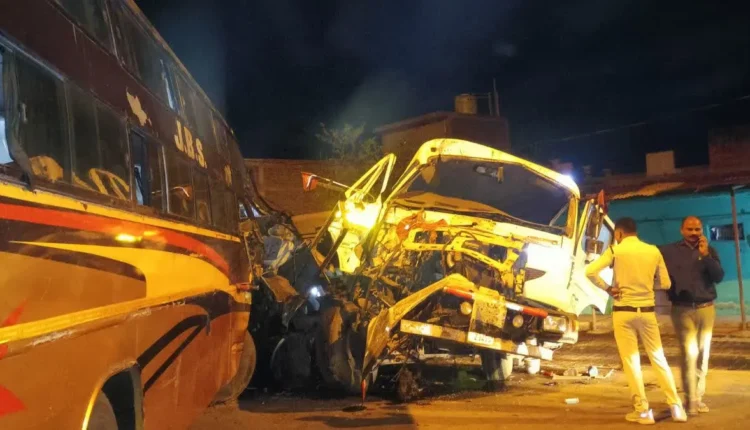 भीषण सड़क हादसा: बस और कंटेनर की टक्कर से मची चीख-पुकार, 5 लोग गंभीर रूप से घायल; मलबे में फंसे रहे ड्राइवर